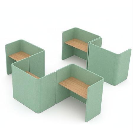 Smart design meets quiet focus, crafted with flat-pack efficiency, hidden cable management; and fire-retardant, dust-resistant premium upholstery, available in fixed or height-adjustable table configurations.