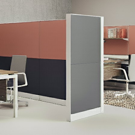 Durable, future-ready panels system on a metal frame, seamlessly integrating with Talin desking. Modular layouts, smart cable management, and easy reconfiguration keep workspaces efficient and adaptable.